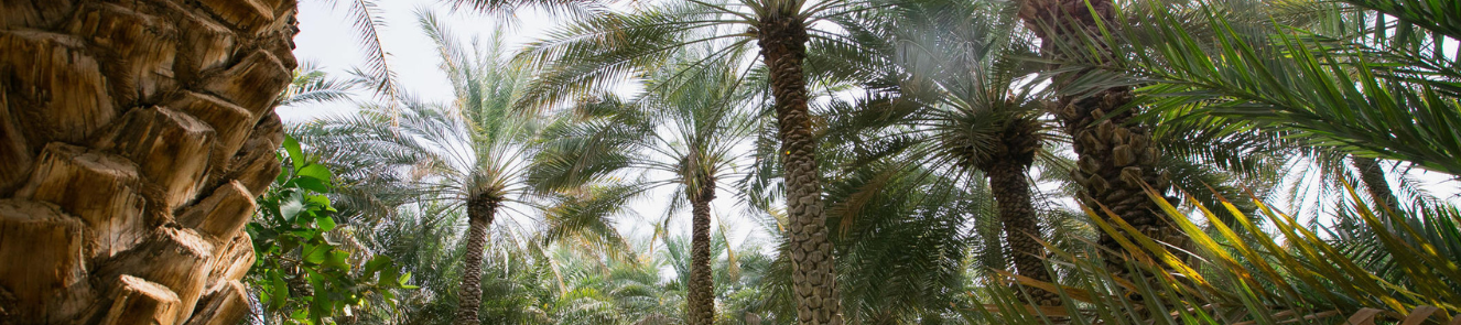 Typically found in deserts and dry, temperate climates, the date palm is an evergreen plant with roots that deeply penetrate the earth in search of humidity. Date palms grow in oases in desert areas with suitable water levels for irrigation.