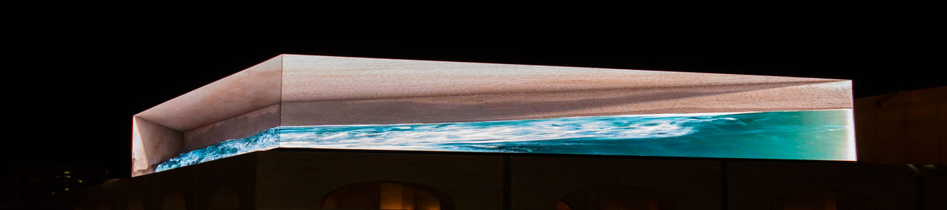 The initiative was inaugurated with the unveiling of WAVE, a public digital media artwork by the artistic collective d’strict, in Abu Dhabi’s Cultural Foundation. Using an anamorphic illusion technique, the 2D installation recreates perpetually surging three-dimensional waves and was first showcased at COEX K-Pop Square, Seoul, South Korea.