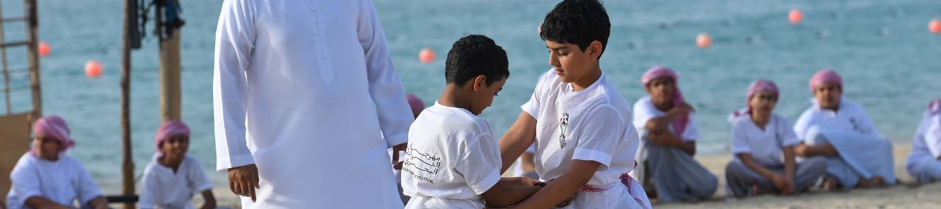 Wrestling has been a popular folk game among Arabs since ancient times. It would be played by boys in the past in open areas (baraha) without any specific rules or instructions. The game doesn’t require more than a sandy space that doesn’t cause harm to the players and that can accommodate spectators. The wrestling ring is a circle drawn on the floor by a boy chosen by the group as a referee. How wrestling is played: In an atmosphere of action and excitement, two players enter the circle and lock hands, each trying to throw the other to the ground. The players usually stand with their feet apart so as not to lose their balance.