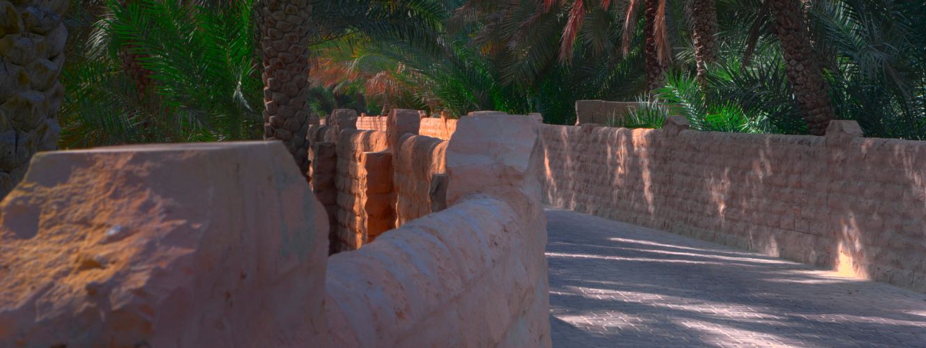 Jimi Oasis is one of six oases which make up the oasis component of Cultural Sites of the Al Ain UNESCO World Heritage Site. Jimi Oasis contains more than a dozen historic earthen buildings – including mosques, fortified houses and watchtowers that speak to the agricultural and administrative importance of this historical oasis from the 18th century onwards. Jimi Oasis sits in a sunken basin that is divided into a series of palm gardens. Fruit trees and vegetables are grown in the shade of the palm canopy. In the past, fields around the outer edge of the oasis were used for winter cereal crops, and beyond that was a zone for animals to forage.